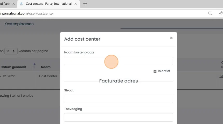 4. Extra Gebruiker: 4.1 Aanmaken extra costcenter