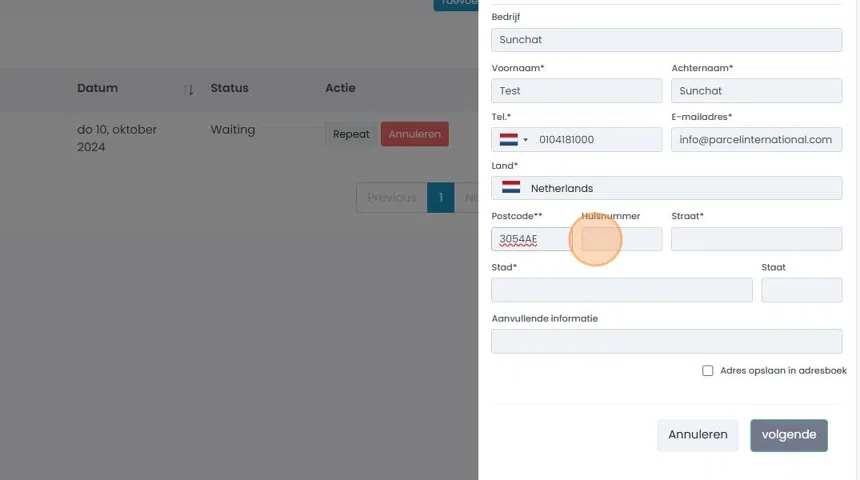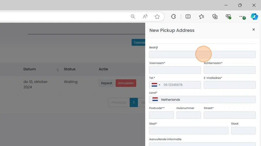 6. Maak een nieuw ophaaladres aan