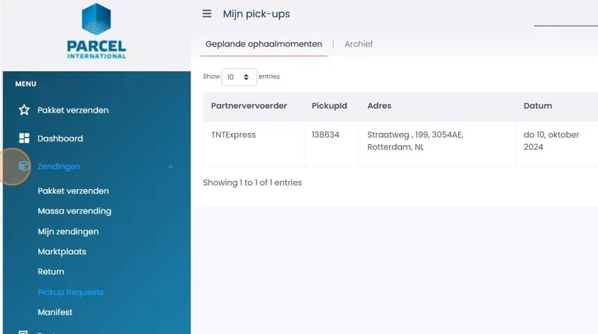 2. Zendingen: 2.2 Pickup requests boeken