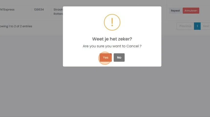 14. Klik op Annuleren en bevestig de annulering