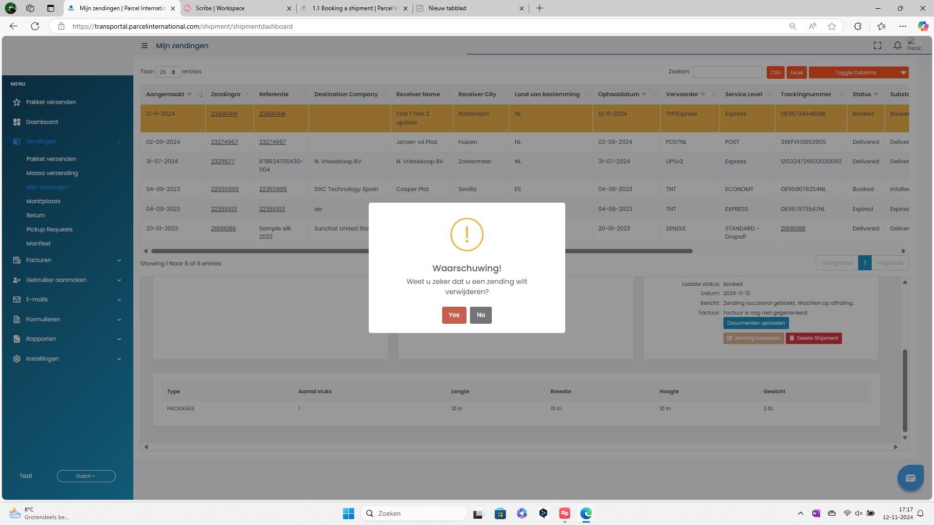 Deze handleiding geeft duidelijke, stapsgewijze instructies voor het verwijderen van een zending, zodat gebruikers eenvoudig zendingen uit hun account kunnen verwijderen als ze per ongeluk een zending hebben geboekt. Als een zending niet verwijderd is voor het einde van de boekingsweek op vrijdag 23:30, wordt de zending gefactureerd en moet deze worden betaald.