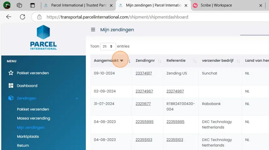 Klik op mijn zendingen