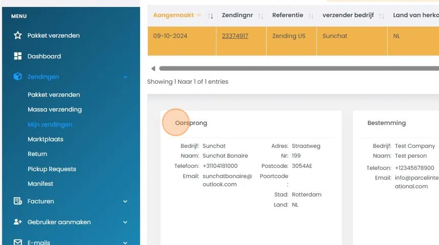 2. Zendingen: 2.1 Mijn zendingen