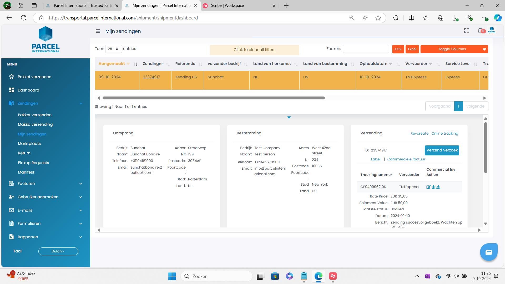 2. Zendingen: 2.1 Mijn zendingen