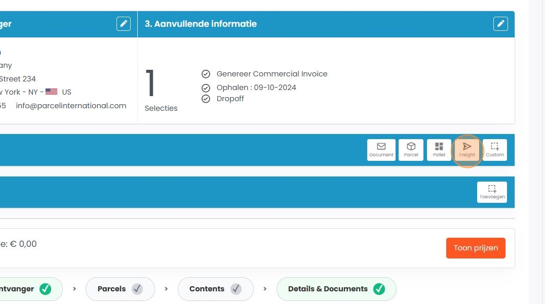 1. Pakket verzenden: 1.3 Boeken Freight zending