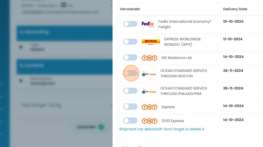 3. Kies de gewenste optie PI Freight voor zeevracht en luchtvracht