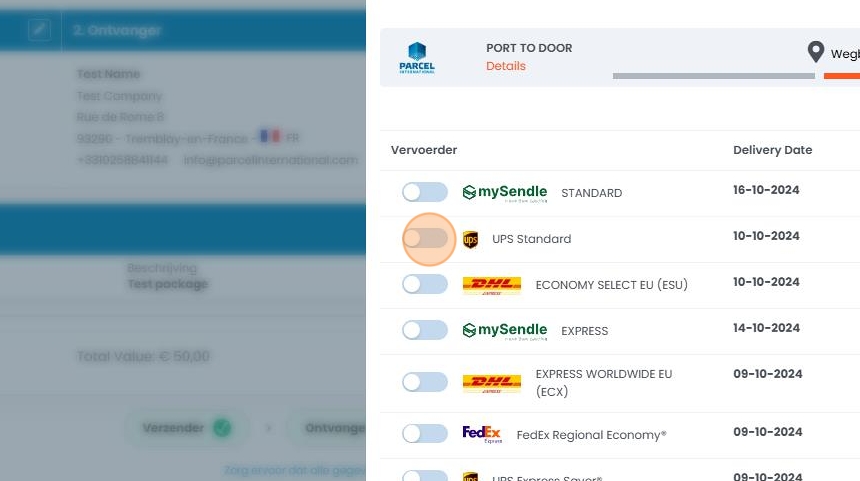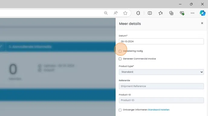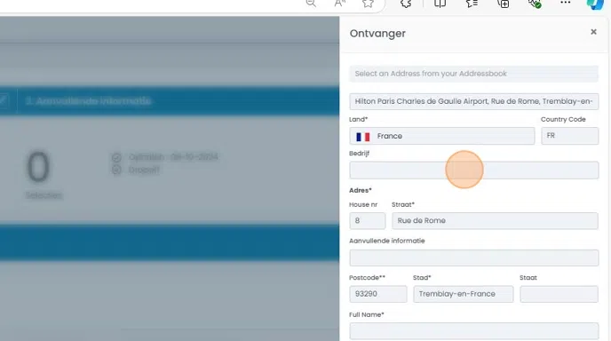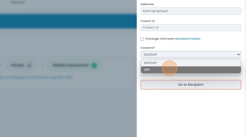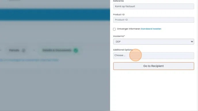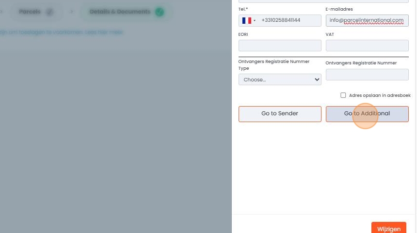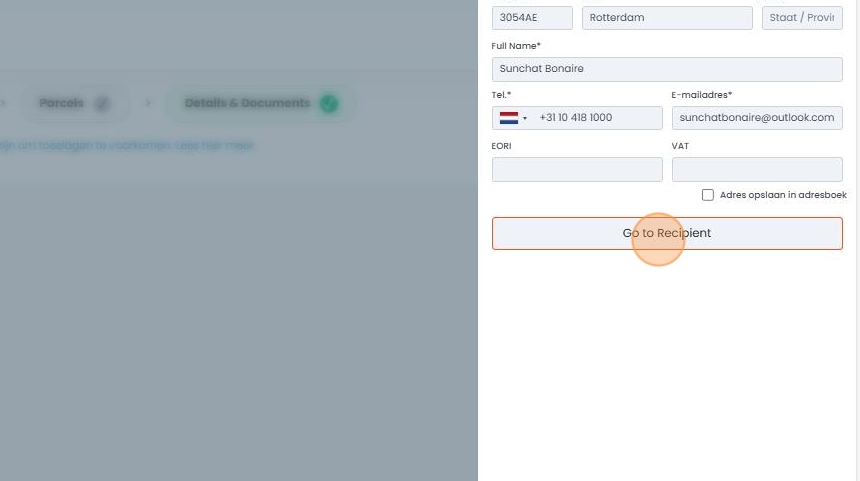 3. Nadat alle gegevens zijn gecontroleerd ga naar Ontvanger / Recipient