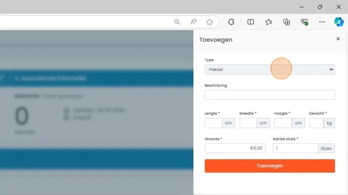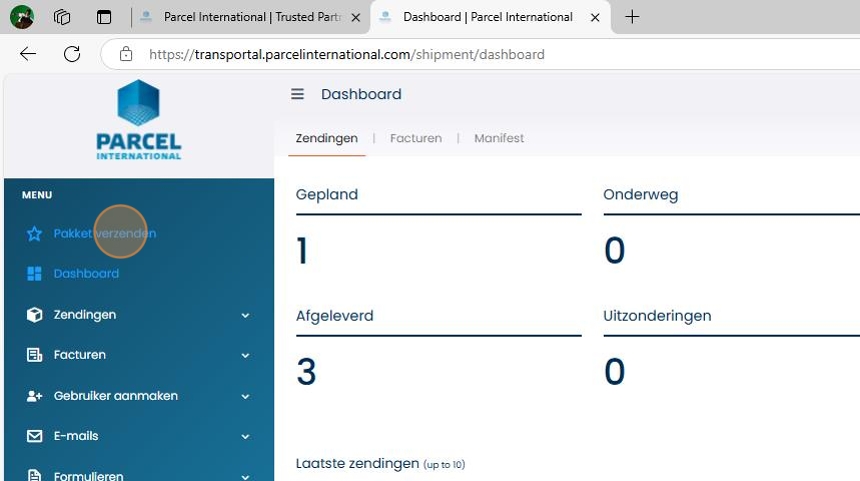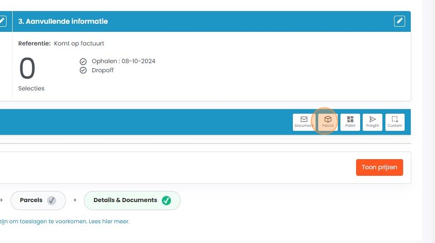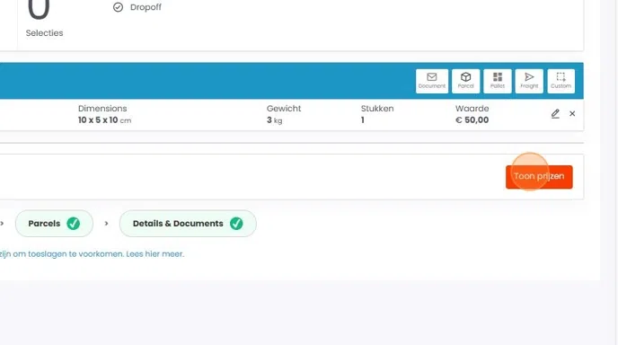 1. Pakket Verzenden:1.1 Boeken van een zending