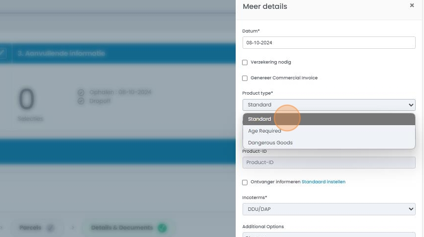 11. Kies eventueel leeftijdscontrole aan de deur of Gevaarlijke goederen